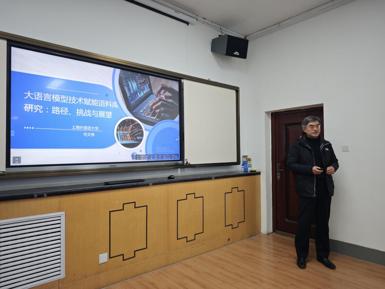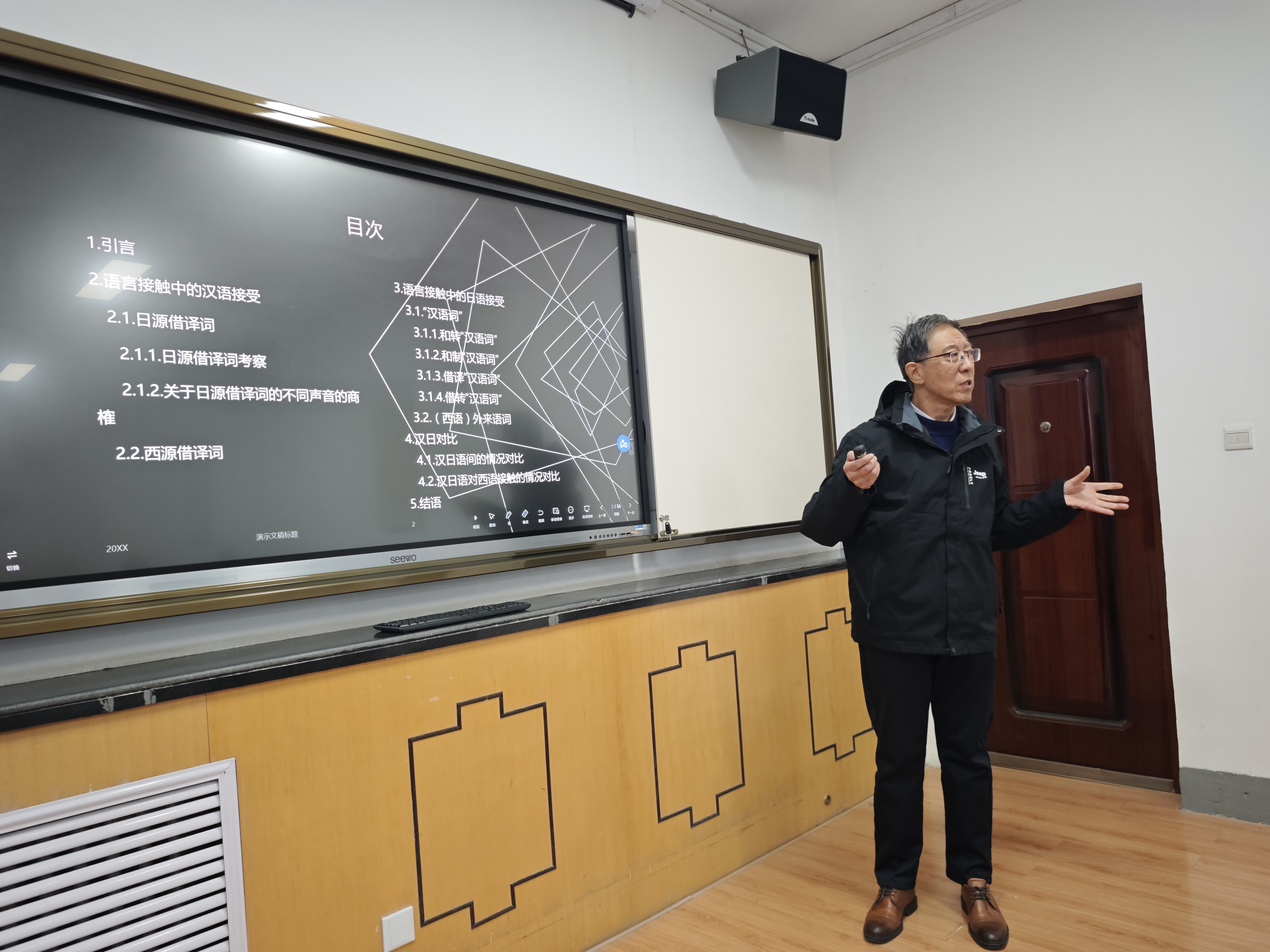 The second session included three academic reports by the visiting experts. Professor Wang Xin delivered a lecture titled “Sino-Japanese Comparison: Lexicalization under Language Contact”. He provided a clear overview of the distinct paths and patterns of lexicalization that emerged as Chinese and Japanese borrowed from each other and encountered Western languages. He also analyzed different types of Sino-Japanese lexical exchange and compared the contrasting strategies of semantic adaptation in Chinese and phonetic borrowing in Japanese when adopting Western loanwords.
